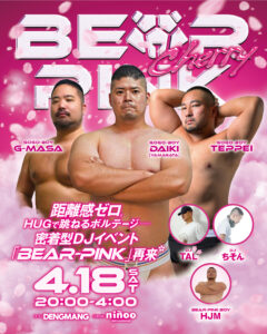 距離感ゼロ🐻HUGで跳ねるボルテージ 密着型DJイベント BEAR PINK vol.2 開催!