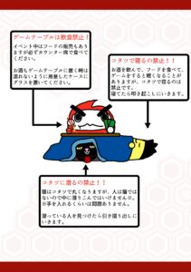 1. ゲームテーブルは飲食禁止: フードは必ずカウンター席で。飲み物を置く際は、用意されたケースに入れてください。